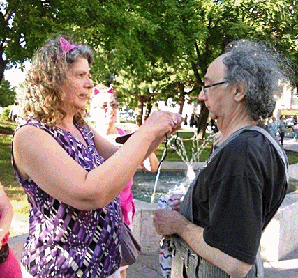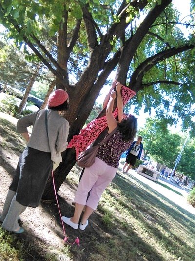 18.00. Gyülekeznek a fonalgerillák az áldozat közelében, akinek a kezén titokzatos csomag himbálózik…