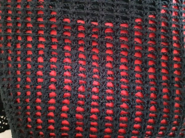 Elhatároztam, hogy horgolok egy ugyanilyet, de feketét, hogy alá bármilyen színt felvehessek. Először pamutfonalra gondoltam, de amikor az árát megláttam, villámgyorsan letettem róla. Köztünk maradjon: tudom, hogy kirívóan antitrendi hozzáállás, de az akrilt kimoshatom a többi színessel, nem szárad napokig kiterítve, a fél szobát elfoglalva, vagy nem nyúlik a padlóig, és nem szúrja alattomosan a nyakamat. Az árából pedig nem vehetem meg készen – háromszor – azt, amit amúgy horgolni akarok. Úgyhogy török műszálas fonal, 100% akril. Ennyit erről.
